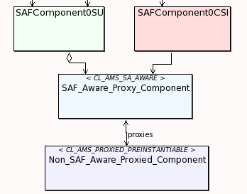Proxy-Proxied Relationship is a function that facilitates a non-SA-aware Component to be managed by the OpenClovis SAFplus Platform. The AMF manages the proxied component indirectly via a proxy component by invoking callbacks for the proxied in the context of its managing proxy. An indirect process registration occurs between the non-SA-aware component and AMF if using a proxy-proxied relationship. The proxy component is the mediator between the AMF and the proxied component, there must be sufficient logic in the proxy component to mediate the communication between the two entities.